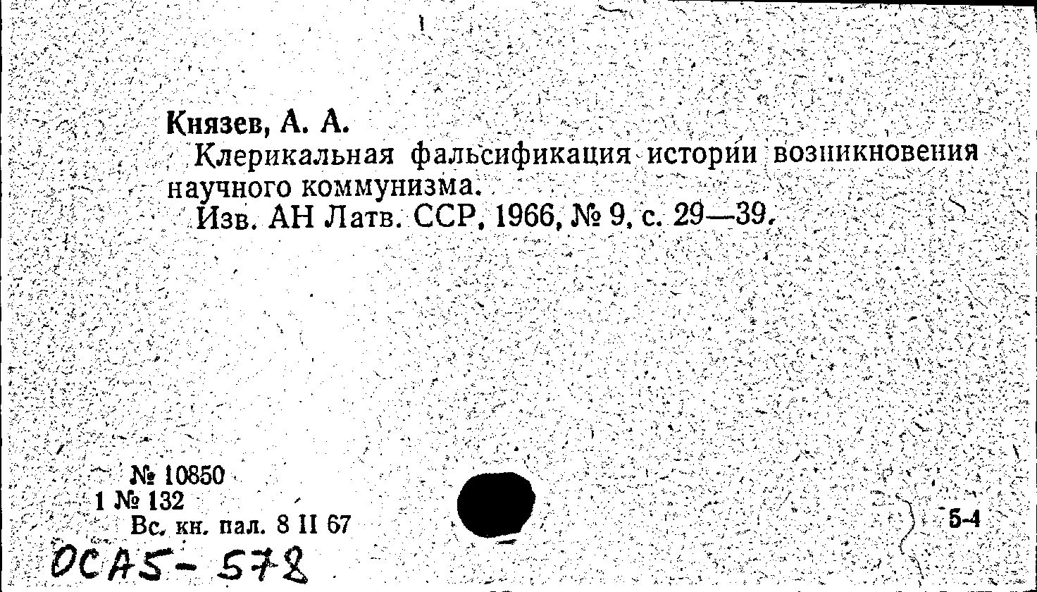 Клерикальная фальсификация истории возникновения научного коммунизма. Известия Академии наук Латвийской ССР, N 9 1966: N 9 1966