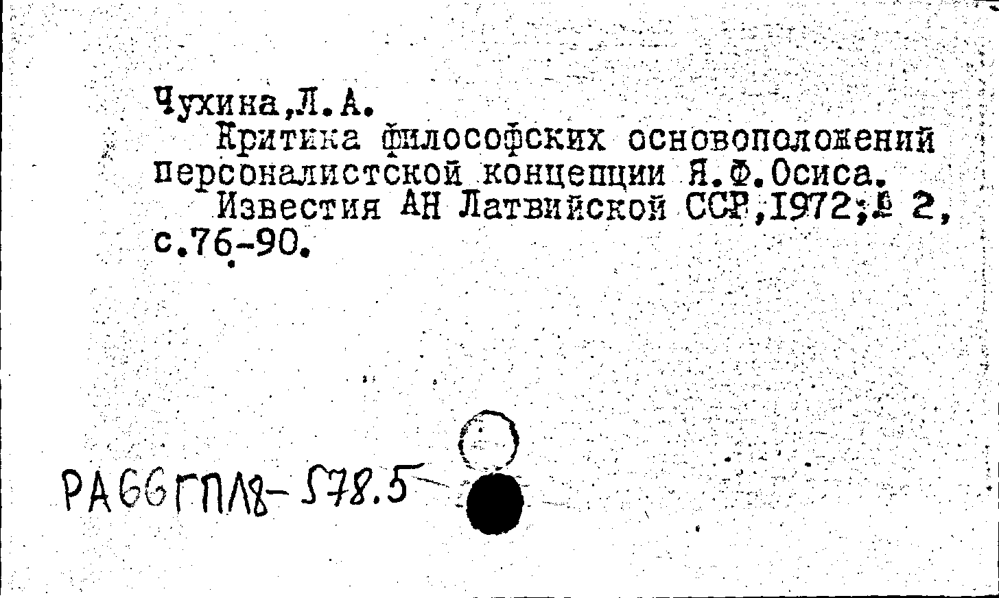 Статья: Критика философских основоположений персоналистской концепции Я. Ф. Осиса. Известия Академии наук Латвийской ССР, N 2 1972: N 2 1972