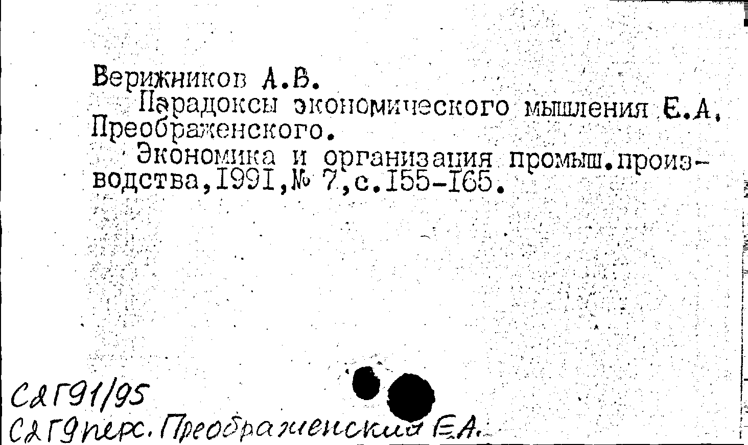 Статья: Парадоксы экономического мышления Е. А. Преображенского. Экономика и организация промышленного производства, N 7 1991: N 7 1991