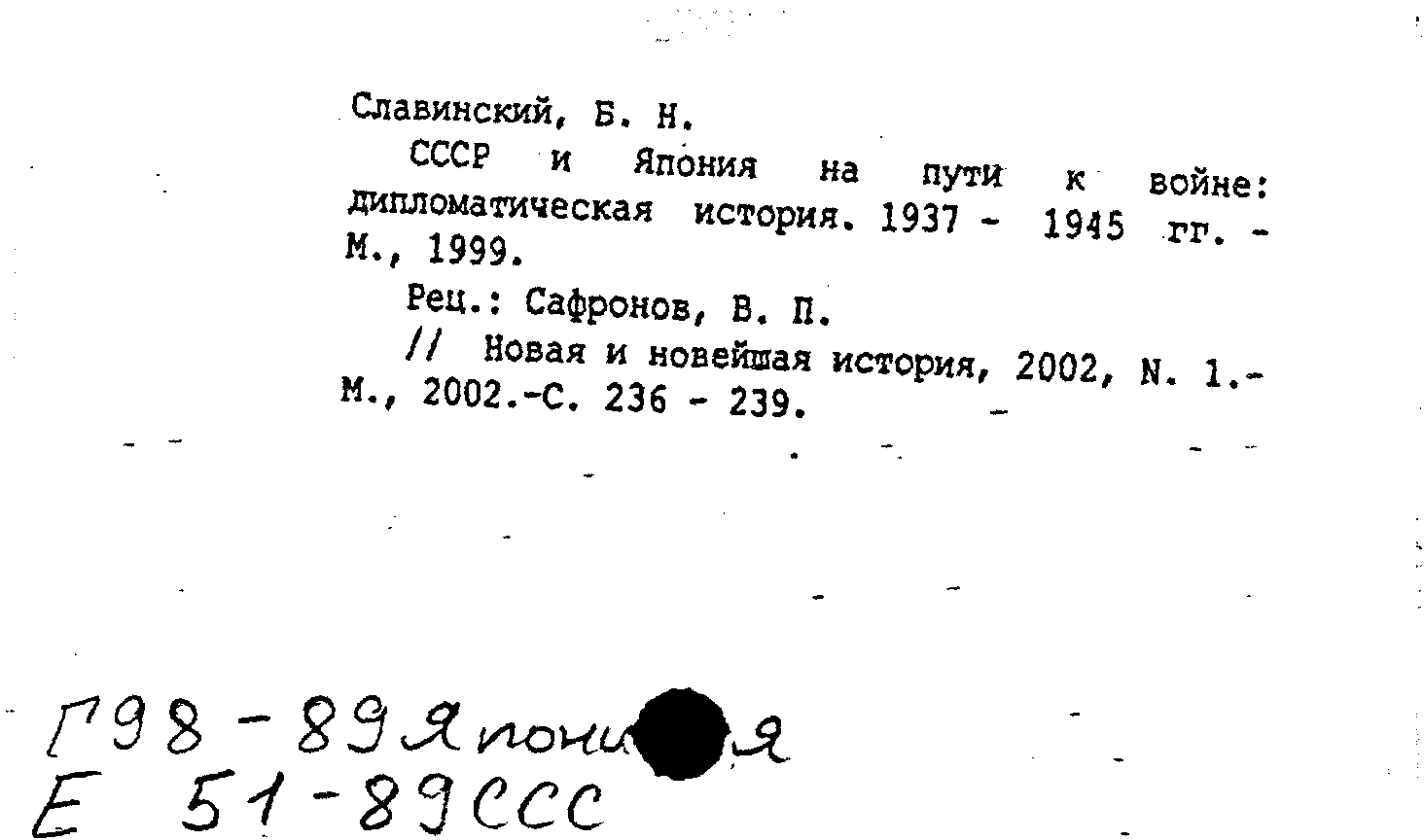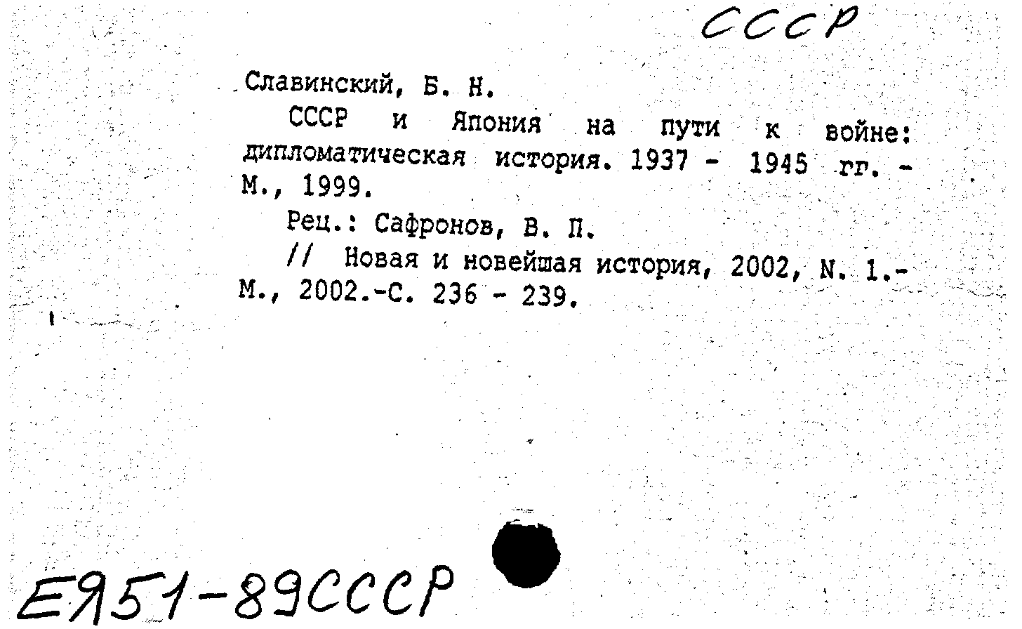 СССР и Япония на пути к войне: дипломатическая история. 1937 - 1945 гг.