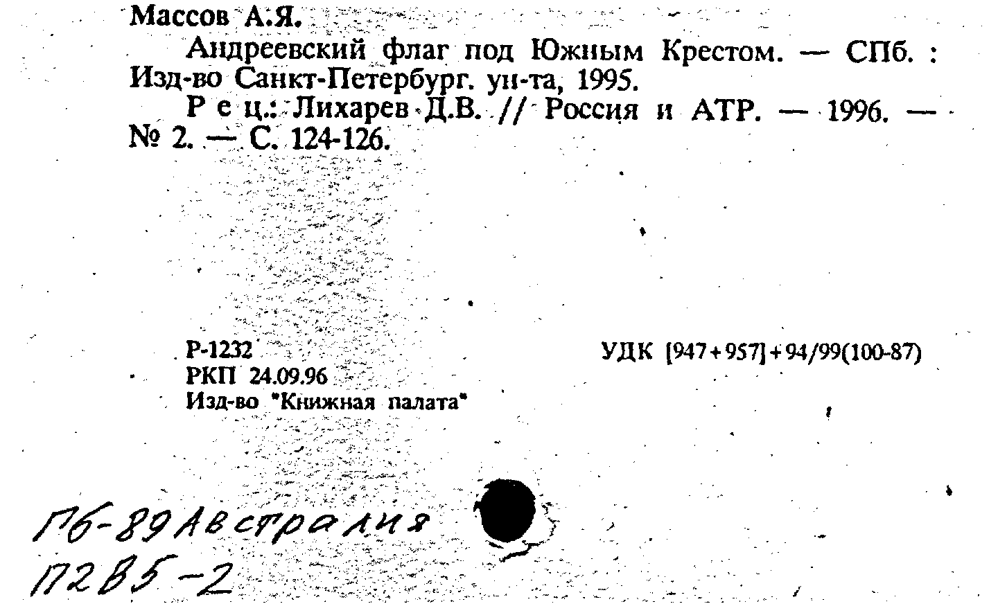 Россия, 1801-1861 гг. \ Внешняя политика \ Взаимоотношения с отдельными странами \ Австралия (1)