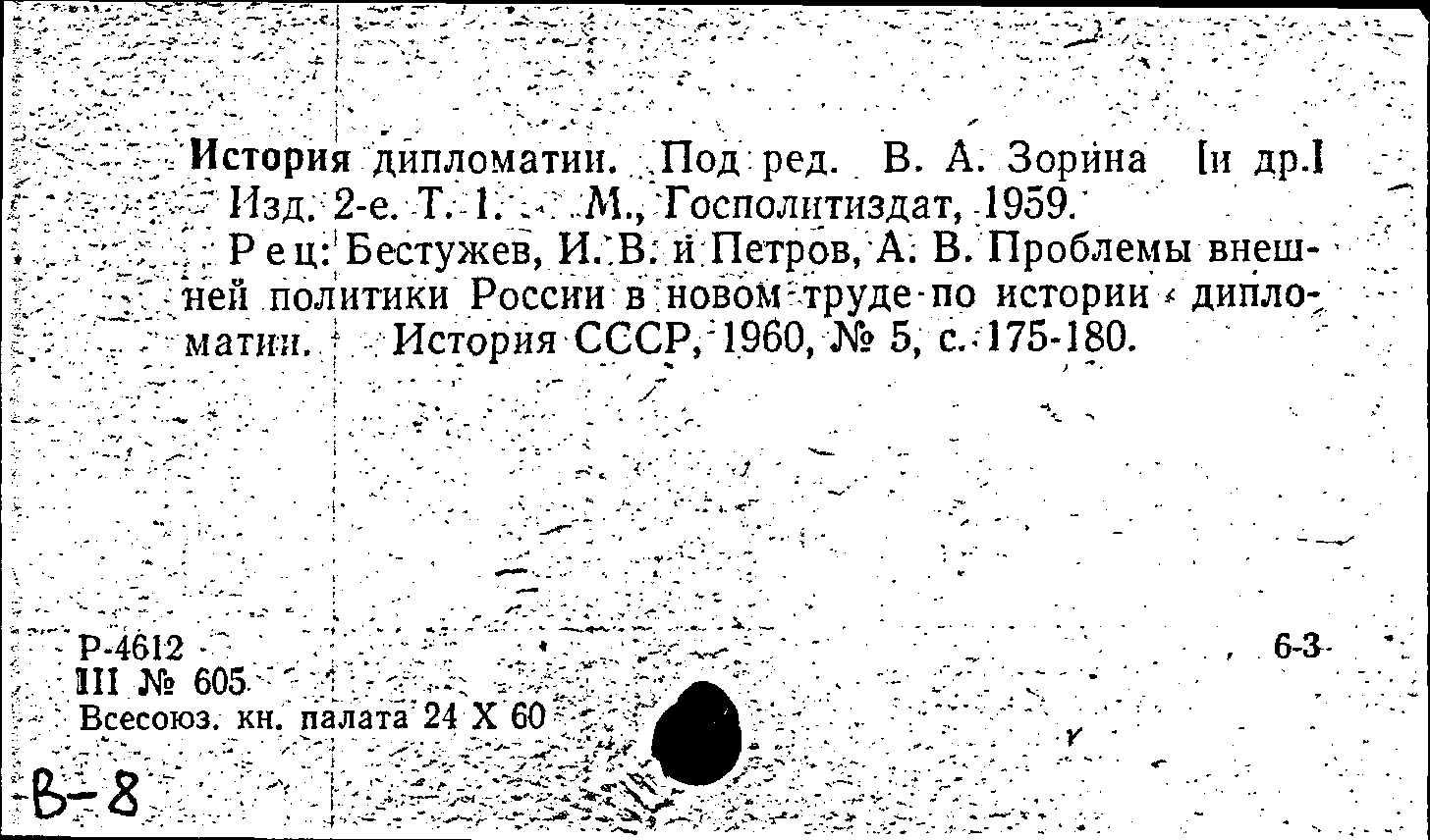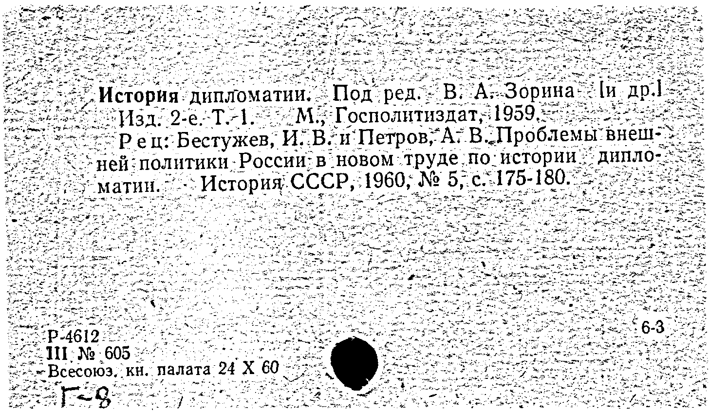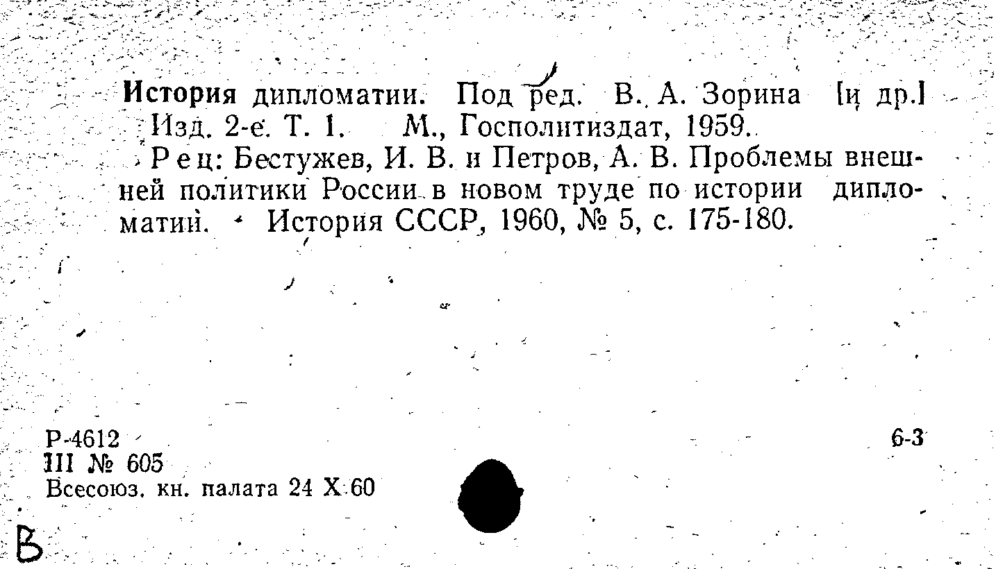 Статья: Проблемы внешней политики России в новом труде по истории дипломатии. История СССР, № 5 /1960: № 5 /1960