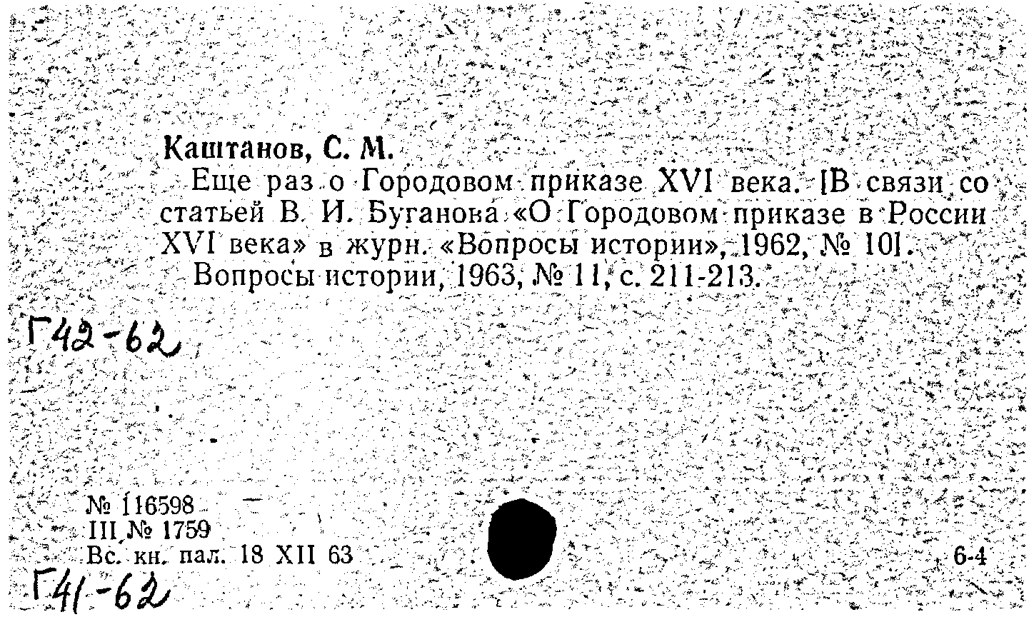 Статья: Еще раз о Городовом приказе XVI века. Вопросы истории, № 11 /1963: № 11 /1963
