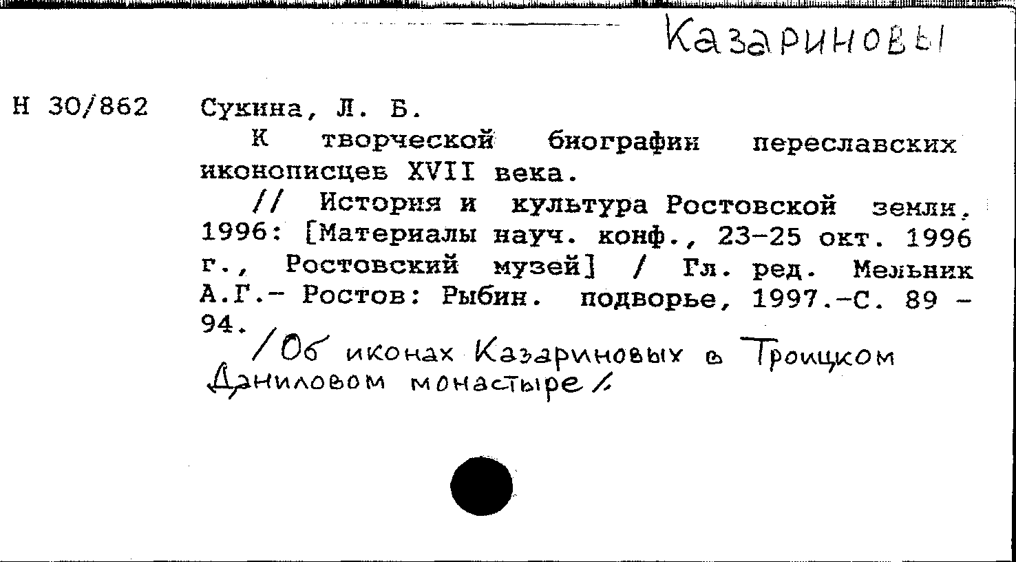 /Об иконах иконописцев Казариновых в Троицком Даниловом монастыре/.